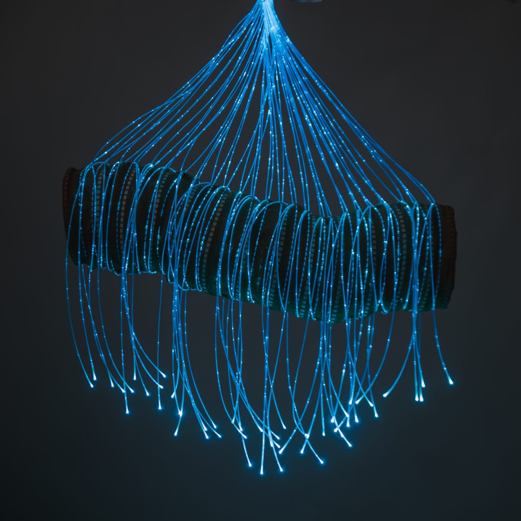 RIR&Co Estudio Textil presenta en nude 2023 “Ardora” Una colección de luminarias tejidas con fibra óptica que une la tradición artesanal con la innovación. Se trata de una edición limitada diseñada para crear espacios mágicos.